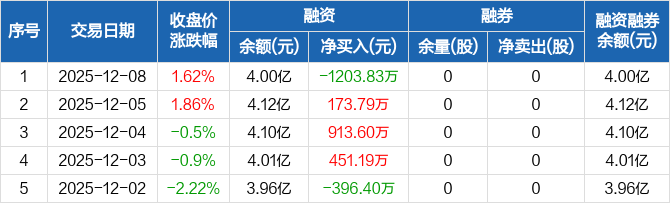 美利信:融资净偿还1203.83万元,融资余额4亿元(12-08)