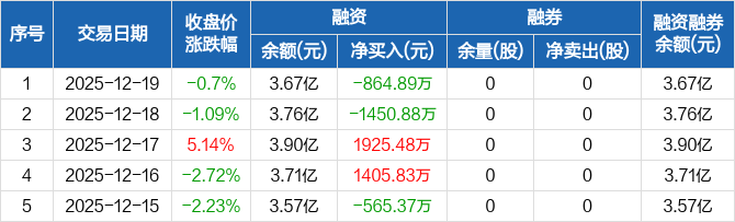 美利信:融资净偿还864.89万元,融资余额3.67亿元(12-19)