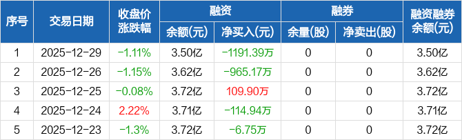 美利信:融资净偿还1191.39万元,融资余额3.5亿元(12-29)