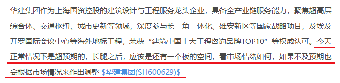 $华建集团(SH600629)$ 作为上海国资控股的建筑设计与工程服务龙头企业,具备全产业链服务能力,聚焦超高层综合体、交通枢纽、城市更新等领域,深度参与长三角一体化、雄安新区等国家战略项目,及埃及开罗国际会议中心等海外地标工程,荣获“建筑中国十大工程咨询品牌TOP10”等权威认可。该股完全符合个人的观点,超预期走向了开盘状态,并且一个板的空间也如期而至,这也算是市场给到的假期红包,虽然盘中出现了小分歧,但不影响整体的态势,所以格局持有,观察节后的情况