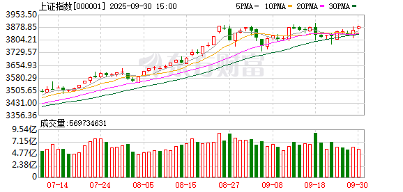 三大指数全天分化,沪指震荡走高,深成指与创业板指冲高回落。上证指数涨0.52%,深证成指涨0.35%,创业板指涨0.00%。两市共计成交21972,较上个交易日是增量191亿。九月收官日大盘三大指数全线收红,但这指数全天都是波澜不惊,这收官日不能亮眼表现和今天是假期前最后一天有关,因为市场很多资金都进入了假期模式,已经无心恋战,所以攻击力不强,市场交投也就弱下来了