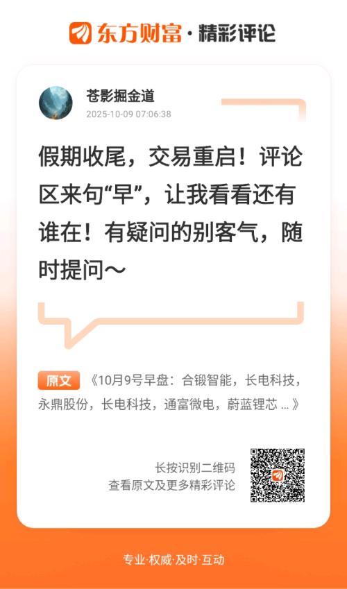 $江波龙(SZ301308)$$上海电气(SH601727)$$山子高科(SZ000981)$//@苍影掘金道 :假期收尾,交易重启!评论区来句“早”,让我看看还有谁在!有疑问的别客气,随时提问~