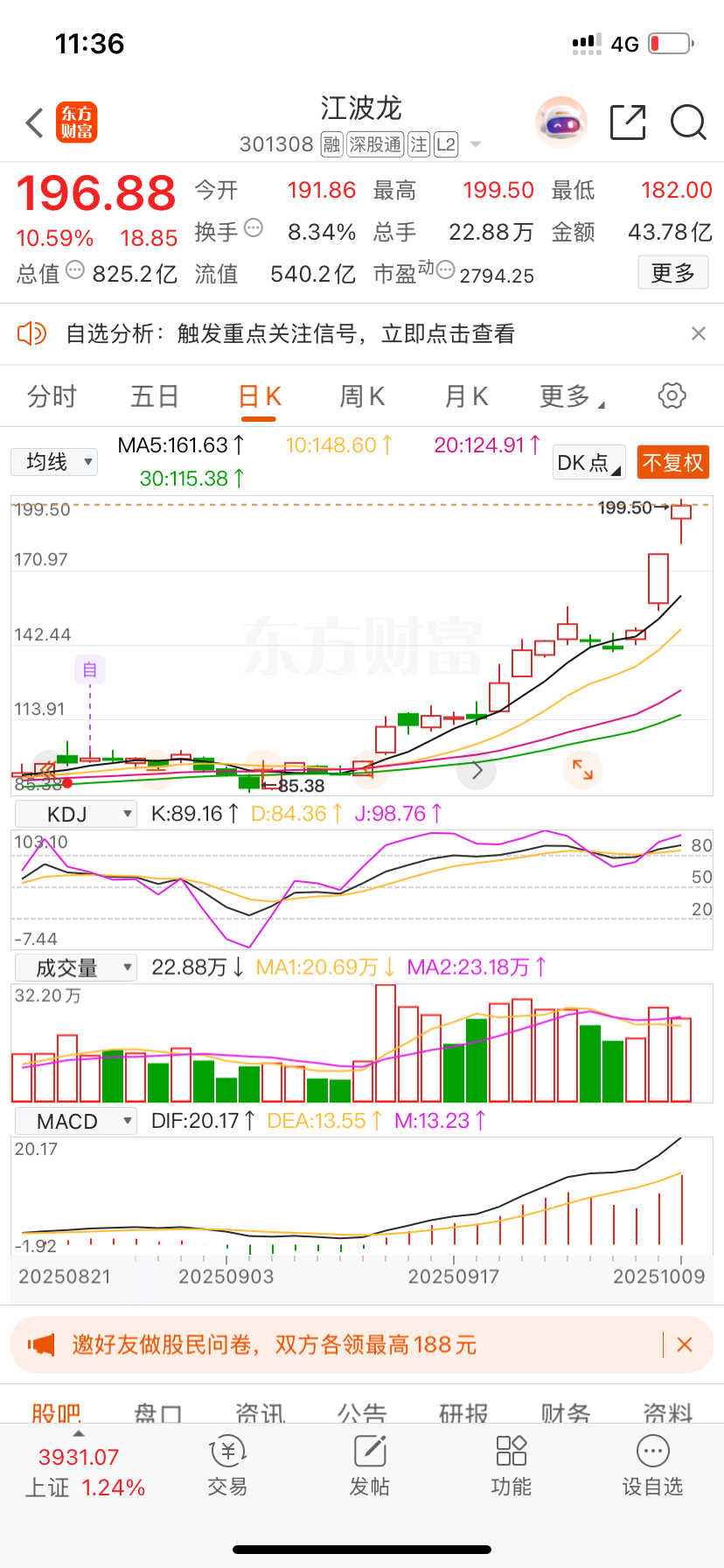 $江波龙(SZ301308)$ 刚开始关注96 已经涨到196了后悔
