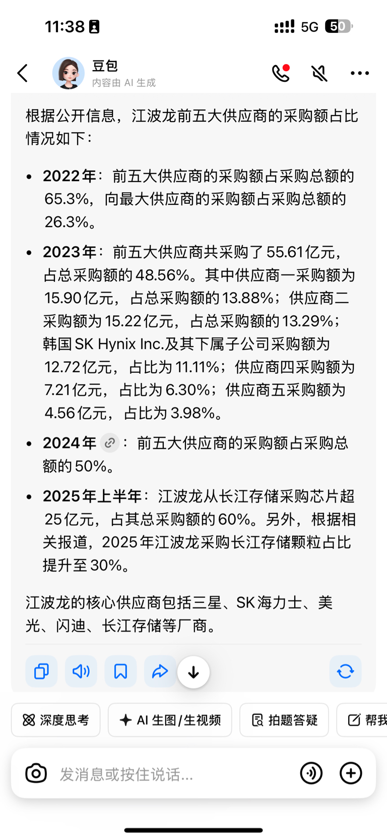 江波龙核心供应商2025长江储存已经占比60%,外围涨跌跟稀土出口管制有很大关系