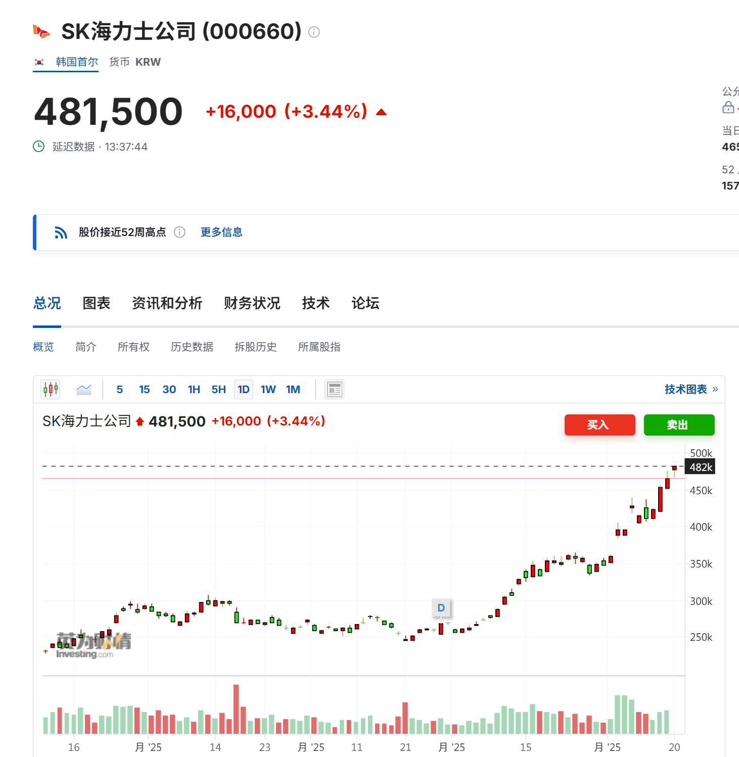 SK海力士走势一览,加油,万亿市值的海力士继续强趋势上涨