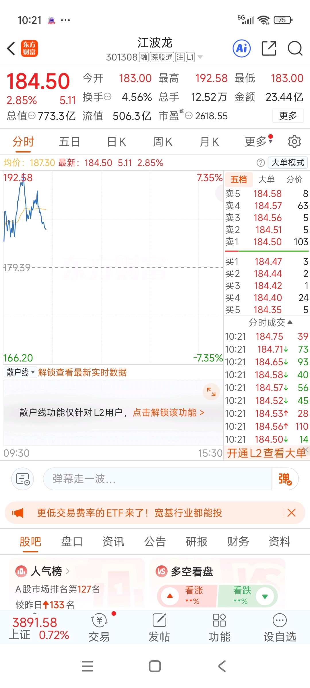 $江波龙(SZ301308)$ 早上 184.5买了这个,发了2遍,老是被屏蔽。这是一个好平台。平台好。审核的人更好!