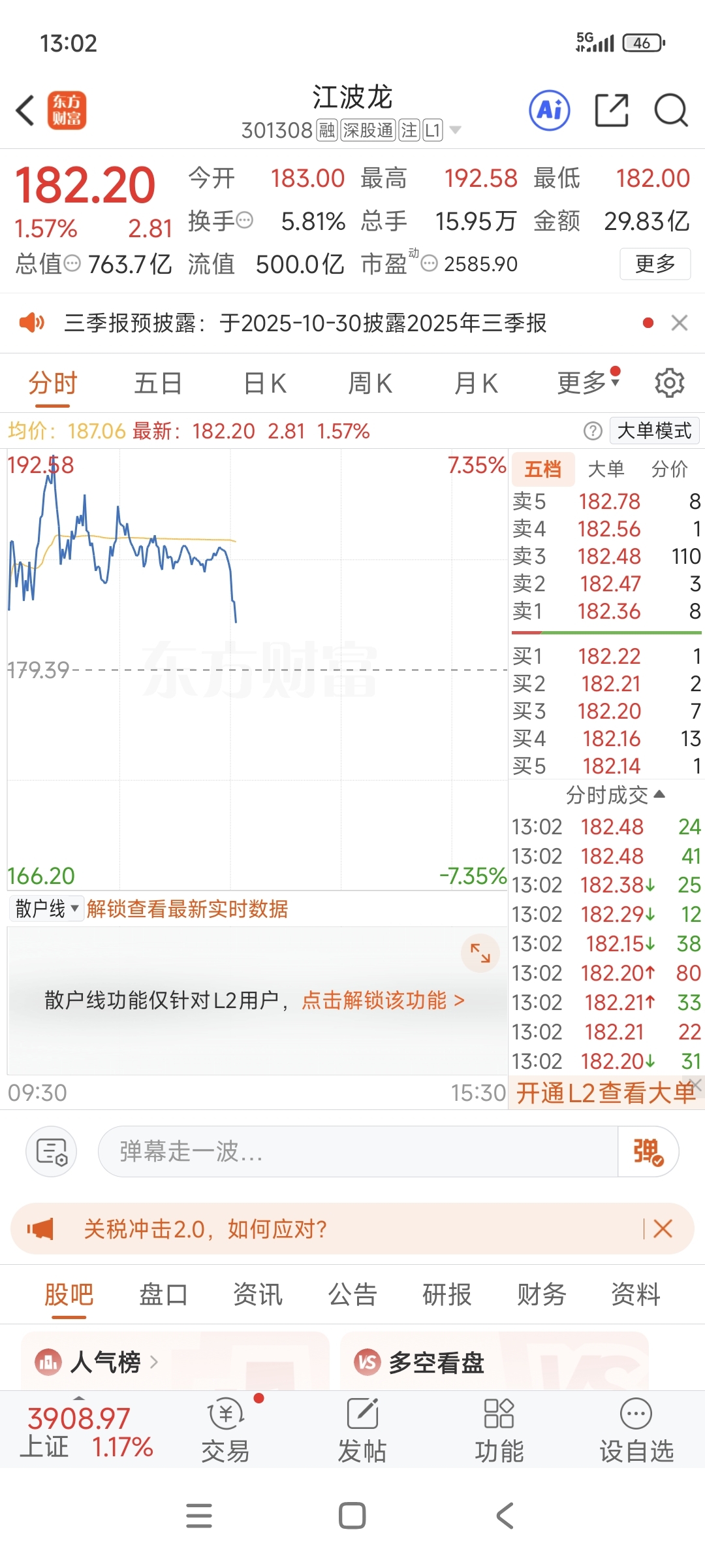 $江波龙(SZ301308)$ 现价182.2元,大胆抄姐姐的底!