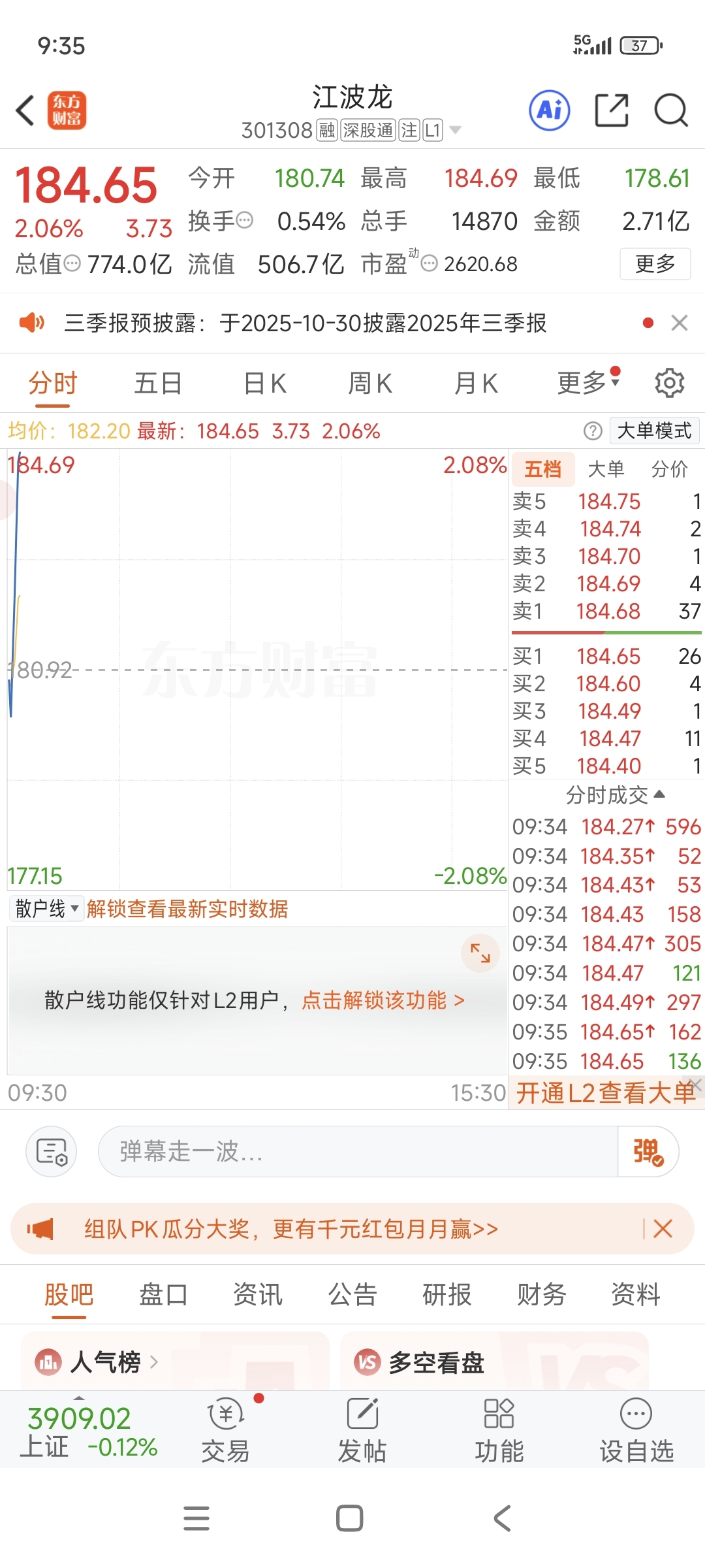 $江波龙(SZ301308)$ 184.65已全部出了!