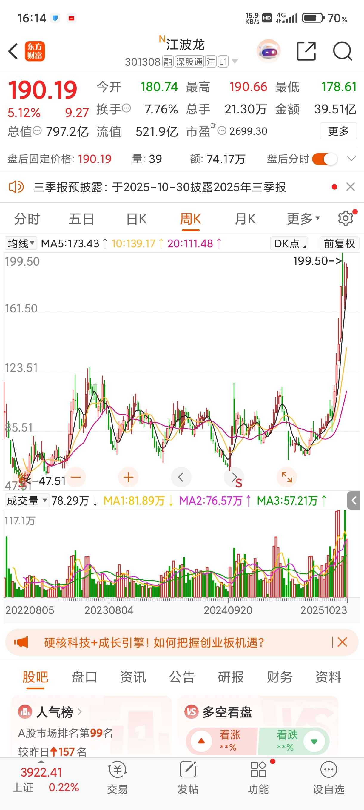 $江波龙(SZ301308)$ 江波龙 190.19 突破
