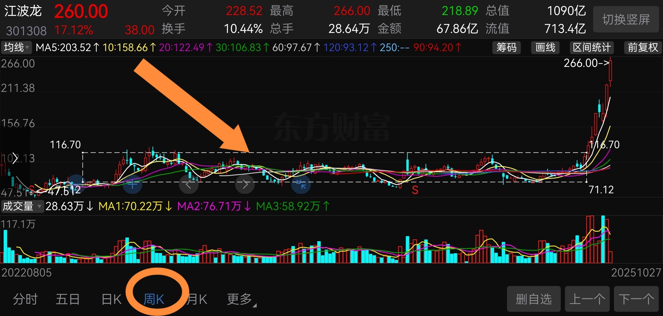 $江波龙(SZ301308)$ 周线这段有谁跟我一样一路震过来的,所以,炒股的利润都是时间给的。