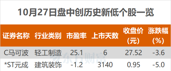 东方财富Choice数据显示,今日有2只个股盘中股价创历史新低。