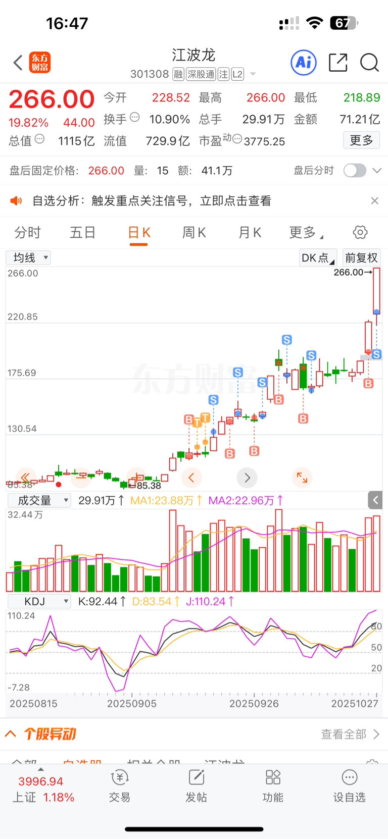 $江波龙(SZ301308)$ 卖飞15个点,拿着不动翻倍都不止了