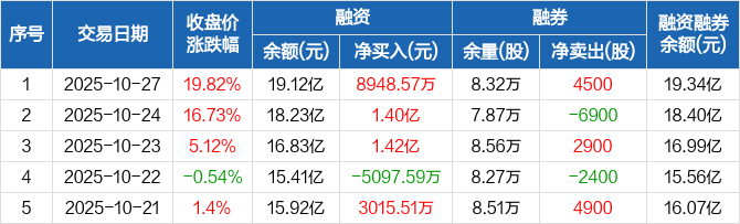 江波龙:融资余额19.12亿元,创历史新高(10-27)