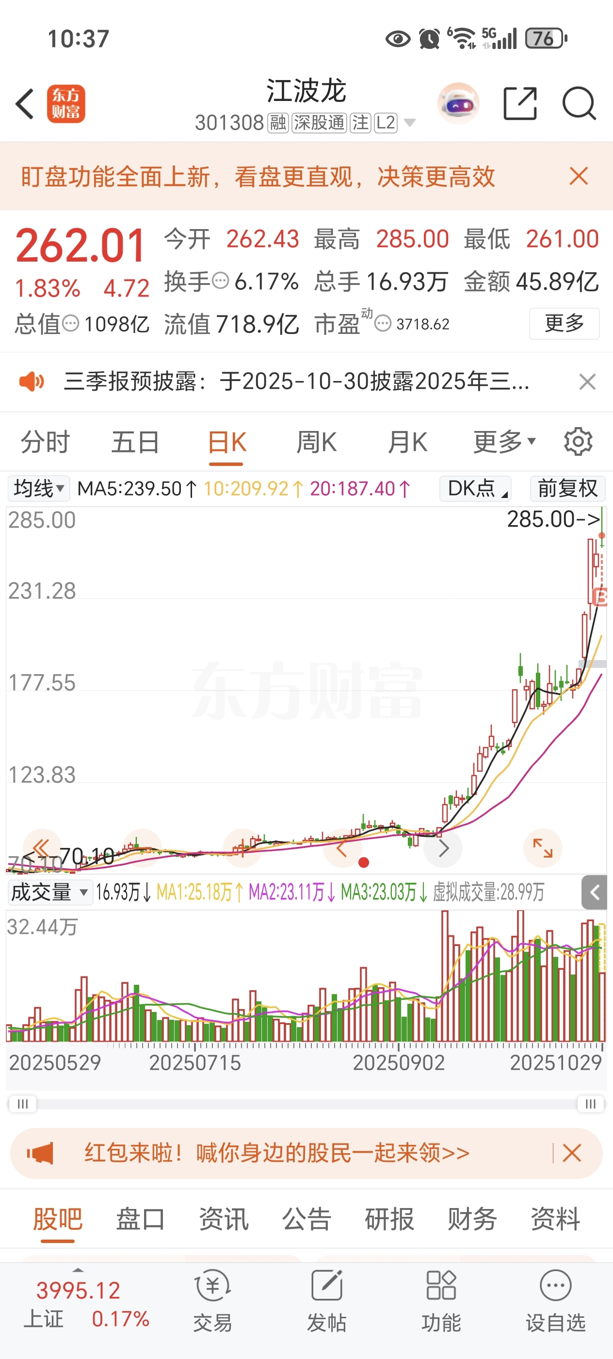 $江波龙(SZ301308)$ 从没见过这么长的上影线