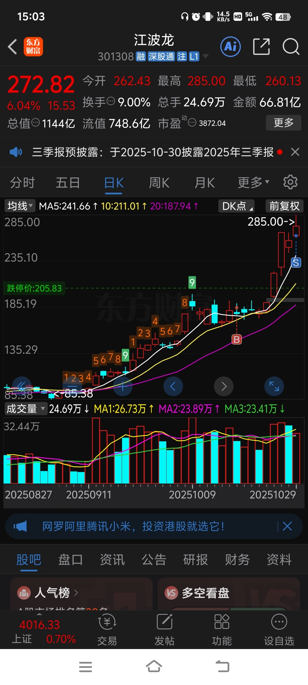 $江波龙(SZ301308)$ 我可能跑早了,不过吃了40个点,我也知足了。我知道是超级大周期,可是我看不懂。有更好的机会,我就走了,祝福留下的兄弟吃大肉。