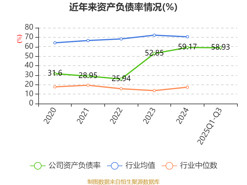 2025年前三季度,公司流动比率为1.62,速动比率为0.58。