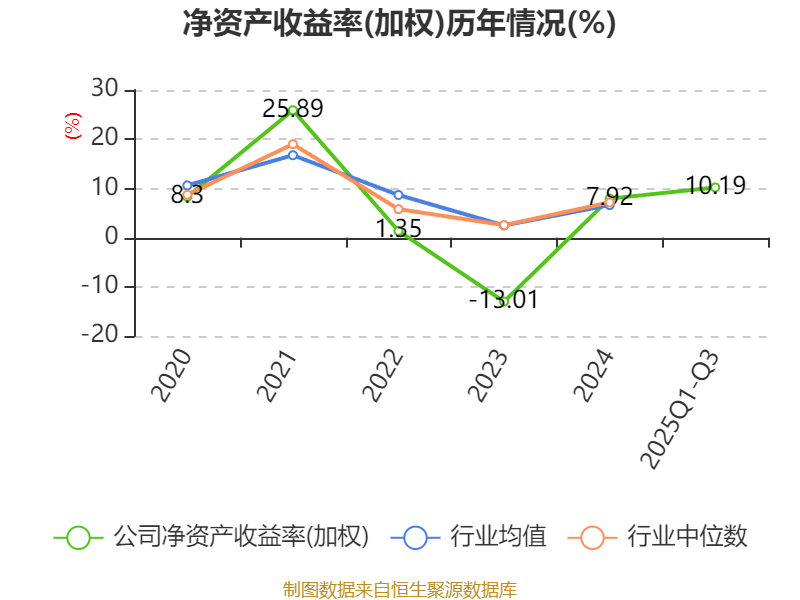 盈利能力方面, 2025年前三季度公司加权平均净资产收益率为10.19%,同比上升1.41个百分点。公司2025年前三季度投入资本回报率为5.83%,较上年同期上升0.38个百分点。