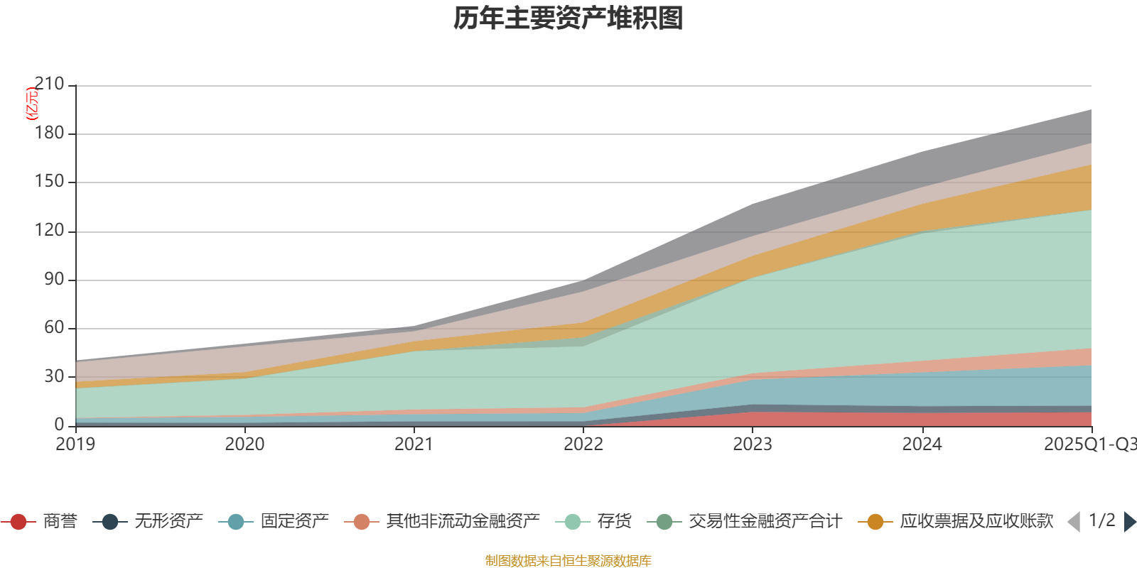 资产重大变化方面,截至2025年三季度末,公司应收票据及应收账款较上年末增加66.67%,占公司总资产比重上升4.39个百分点;存货较上年末增加8.73%,占公司总资产比重下降2.69个百分点;预付款项较上年末减少86.42%,占公司总资产比重下降2.2个百分点;其他非流动资产较上年末增加245.54%,占公司总资产比重上升1.84个百分点。