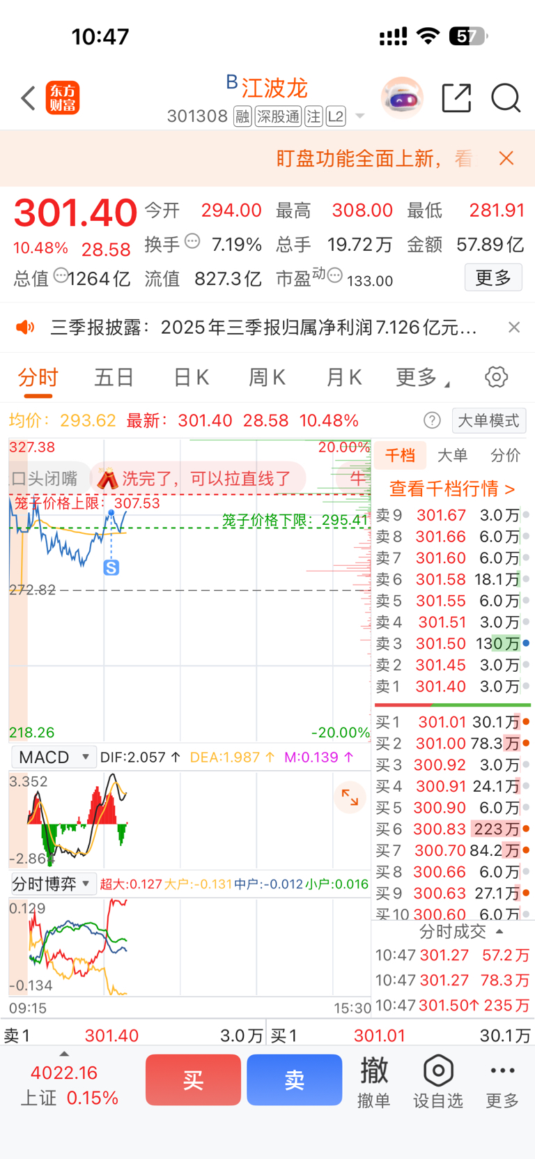 $江波龙(SZ301308)$ 卧槽了 本来还准备做个T,走了一半,居然又拉回来了,不控异动了?