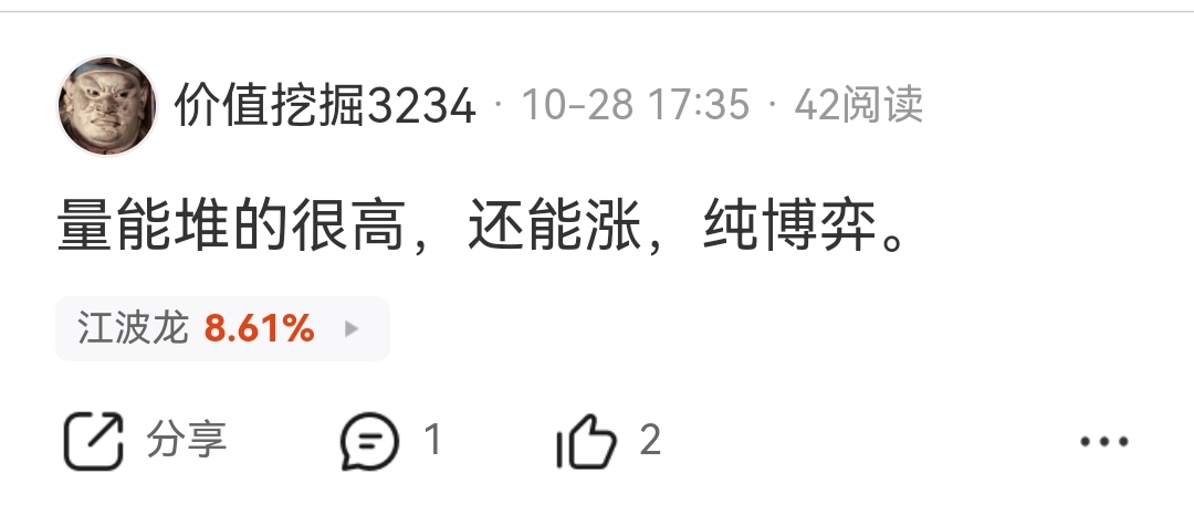 $江波龙(SZ301308)$ 之前说过看涨,这个位置还是看涨,需要博弈,没先手不能进了。