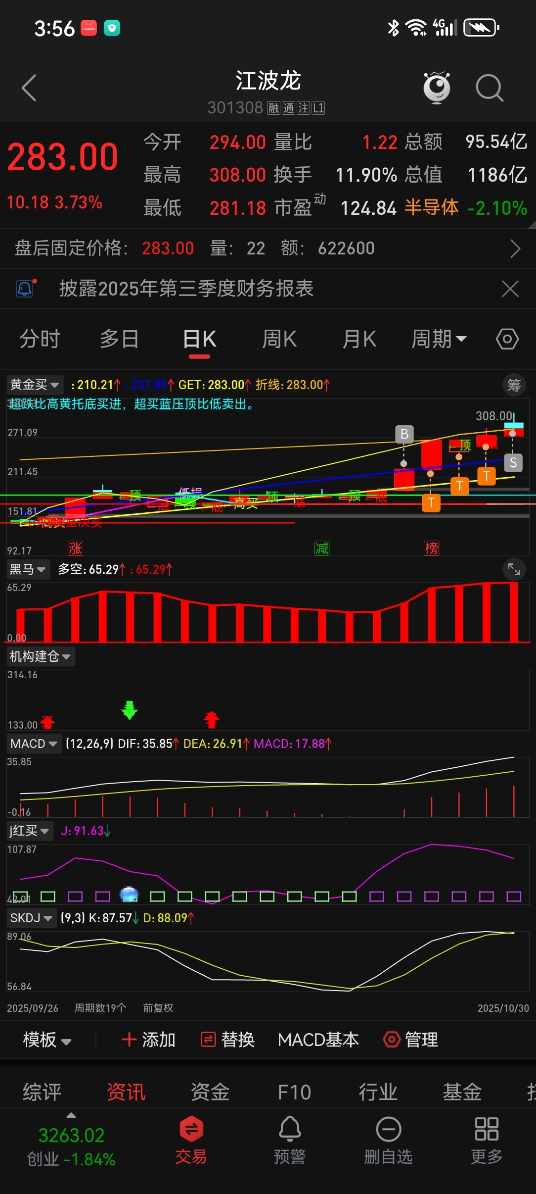 今天305压力位,格局到下午不能收回均线,尾盘清仓,在里面的发财,后面几天应该会震荡,五天不能创新高建议止盈。