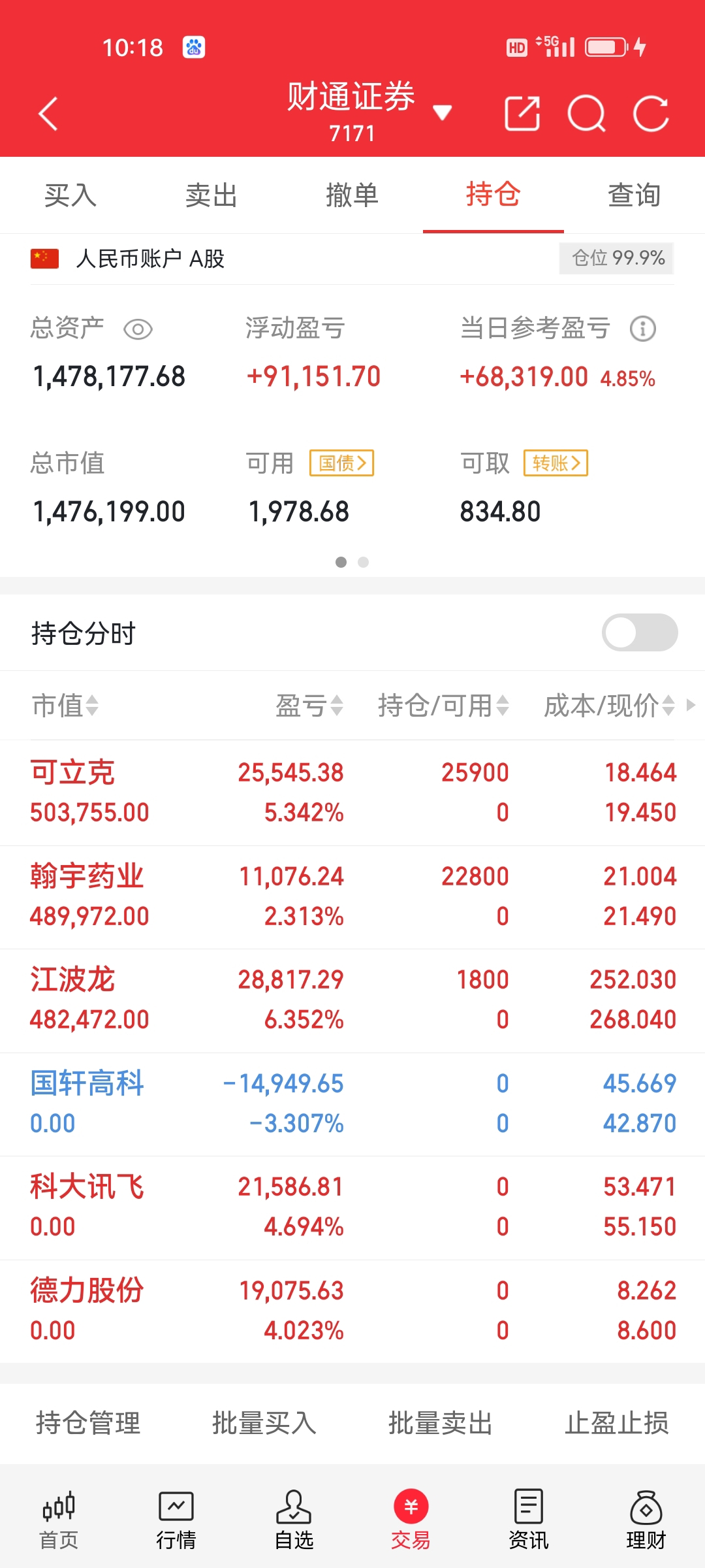卖出: 德力股份,国轩高科,科大讯飞,落袋为安