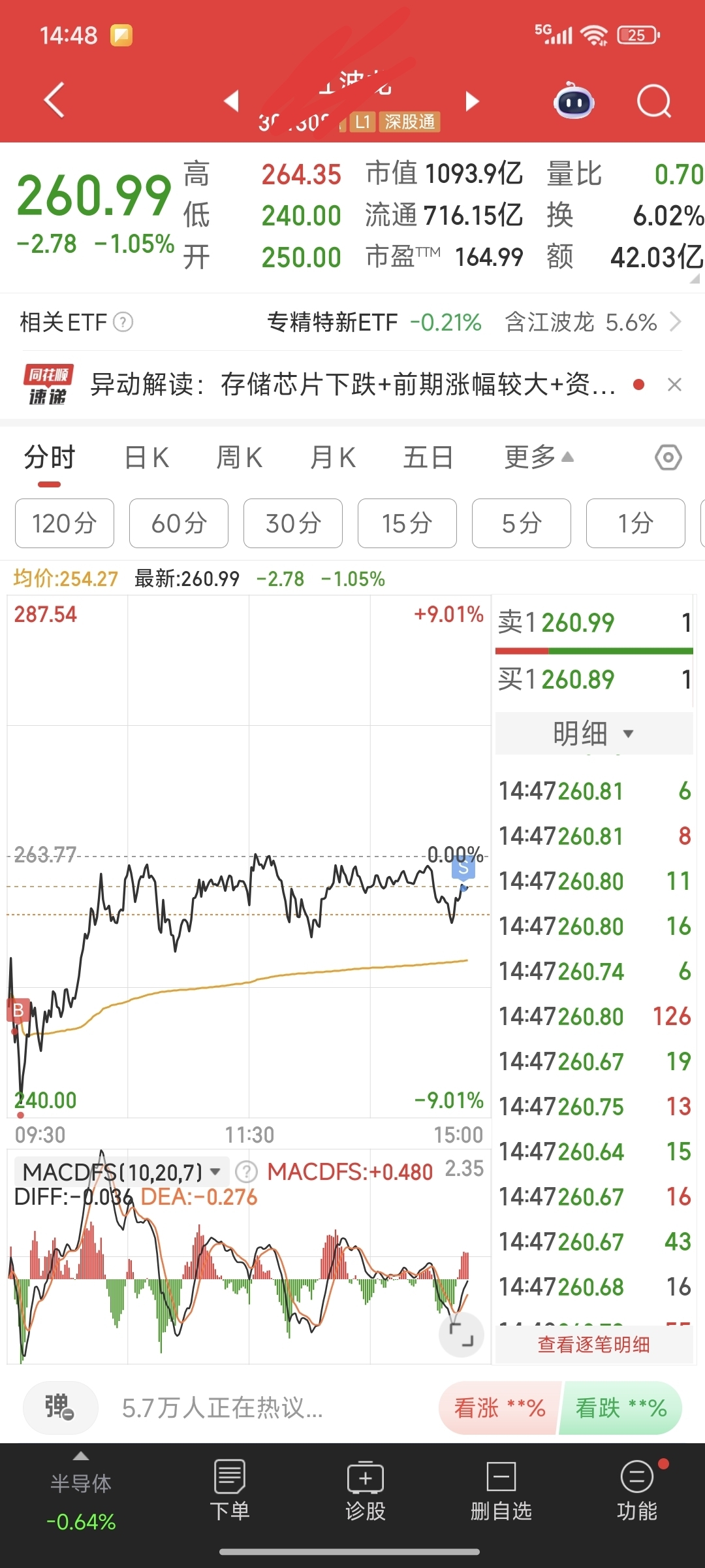 $江波龙(SZ301308)$ 被主力成功洗出来