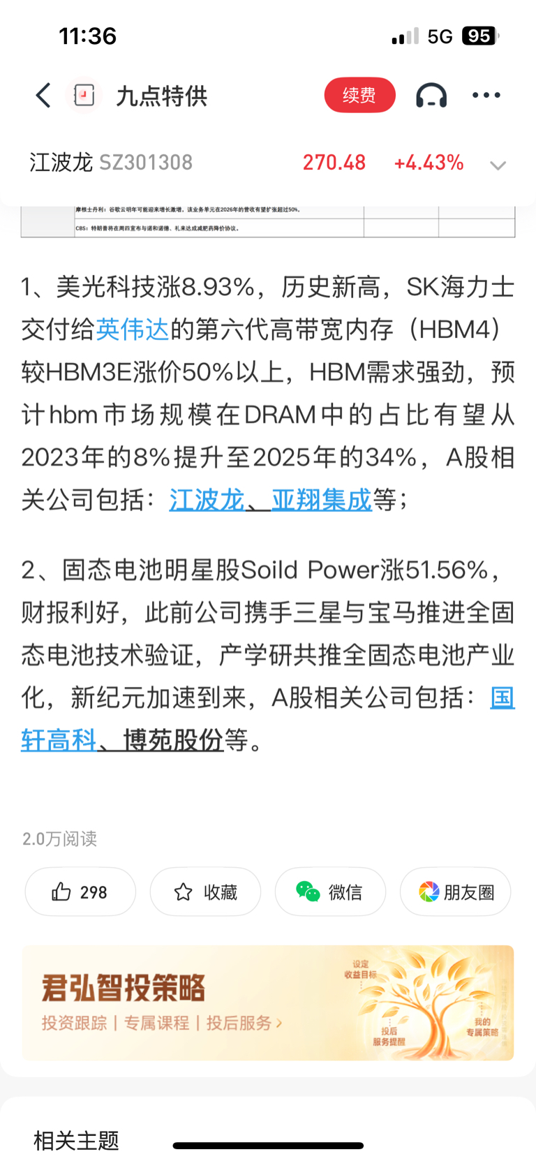 江波龙:国内第一、全球前三的存储芯片!持有!适用做T!看图