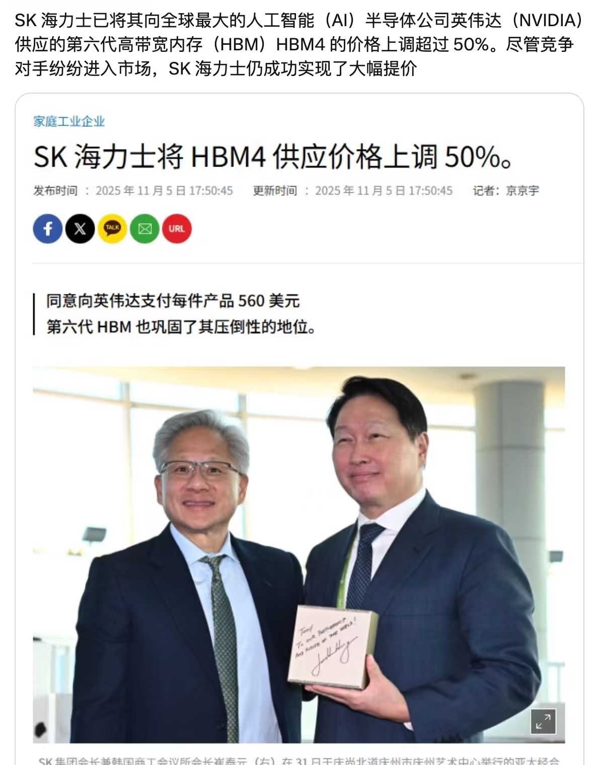 第三,sk海力士居然能够跟英伟达谈价格,且大幅涨价,卖方信号强烈;