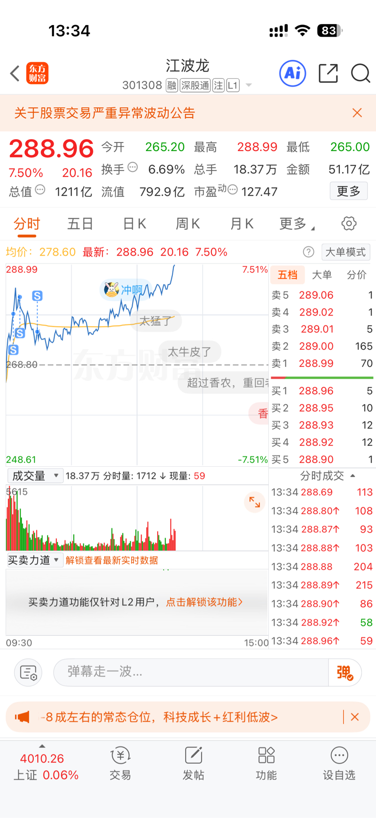 温馨提示: 1.根据《证券法》规定,禁止编造、传播虚假信息或者误导性信息,扰乱证券市场;2.用户在本社区发表的所有资料、言论等仅代表个人观点,与本网站立场无关,不对您构成任何投资建议。用户应基于自己的独立判断,自行决定证券投资并承担相应风险。《东方财富社区管理规定》