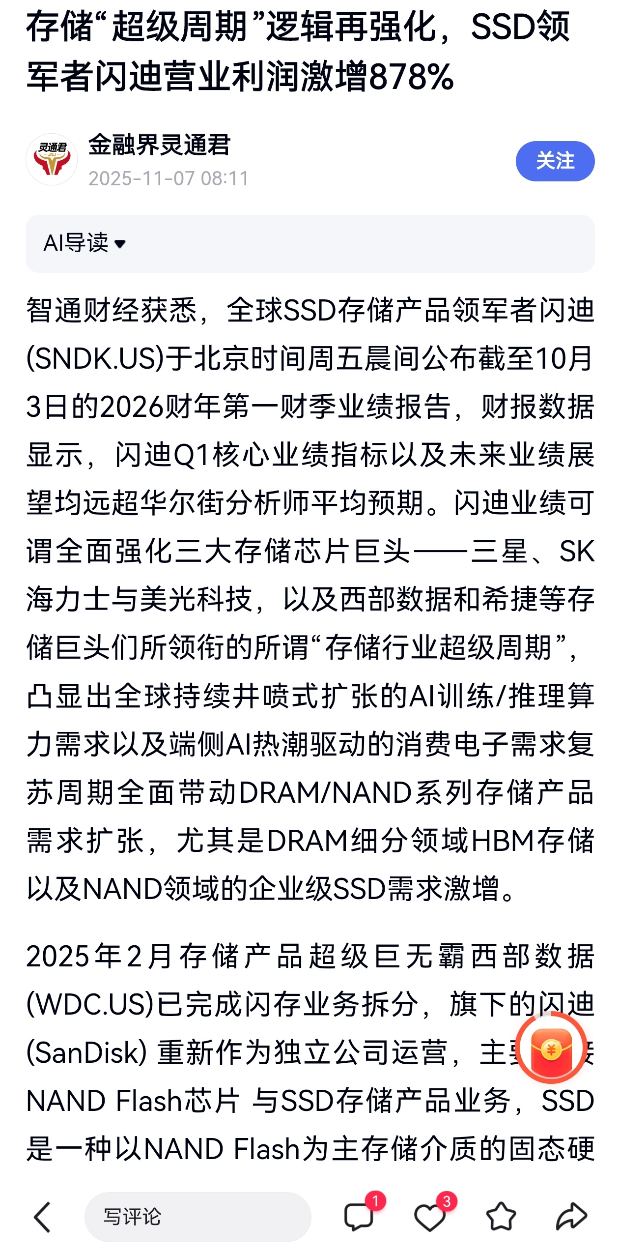 $置富科技(SZ838696)$ $闪迪(NASDAQ|SNDK)$ $香农芯创(SZ300475)$ 永远不要低估云巨头们投资AI基建的决心,无论谷歌微软meta还是亚马逊以及openAI,阿里,字节以及华为,他们正处在争夺未来AI王座的华山论剑阶段,无论如何烧钱,也绝不允许自家的用户因算力不够而跑到别家去以及努力争夺更大的AI市场,数据中心建设需要一定时间需提前投入,否则就提前从AI时代退幕,巨头的视野永远是提前布局未来并保存长期投入定力,毕竟有强大的现金流支撑(除了openAI靠蹭,但它也是最大的鲶鱼,搞的传统巨头睡不着觉),未来巨头们的争夺会很激烈,肯定有胜者和败者,只不过是败者的市场被胜者取代而已,但Ai基建参与者会在相当长一段时间成为赢家,毫无疑问,AI已经成为一种生活方式,现在看到的AI视频越来越多,无论想象力的呈现还是视频效果都令人惊讶,当人们的想象力已经能够快速高效转变成视频呈现在大家眼前,未来对算力和存力的需求将是指数级爆发,唯一要解决的是降低算力成本,HW以存力补算力的AI推理方案大幅降低计算成本(避免了80%的同类问题的重复计算),通过Ai推理数据在存储分级流转将大幅缓解HBM的压力增加ddr5和ssd的使用规模,AI强大的Ai基建征途才刚刚开始。