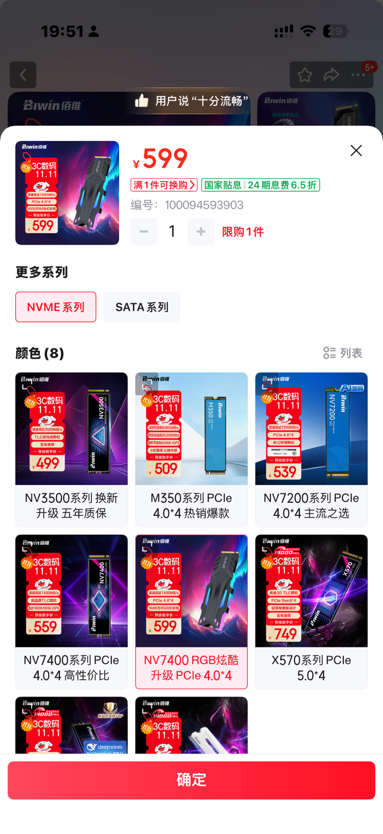 京东的ssd固态硬盘江波龙旗下的雷克沙的限购两件!佰维存储的限购一件!极度缺货了