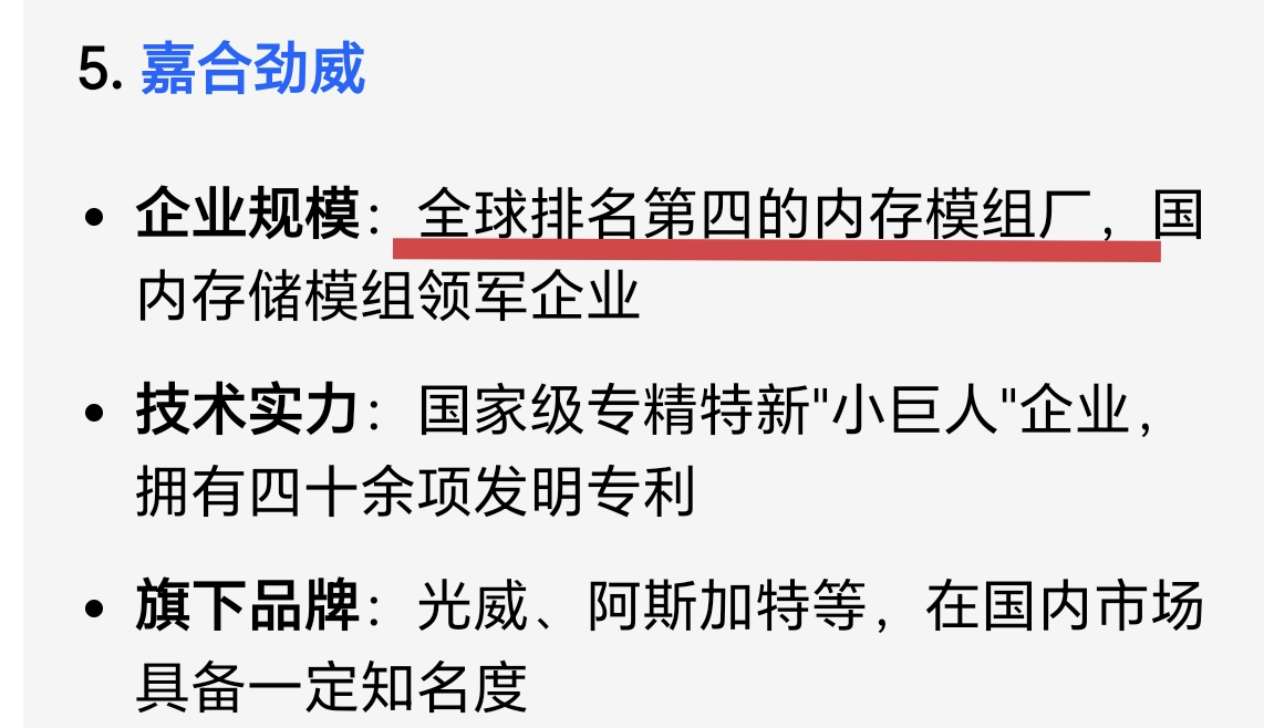 唯一比肩闪迪的标的,全球排名第四的内存模组厂嘉合劲威,就是目前的,已经确定全资收