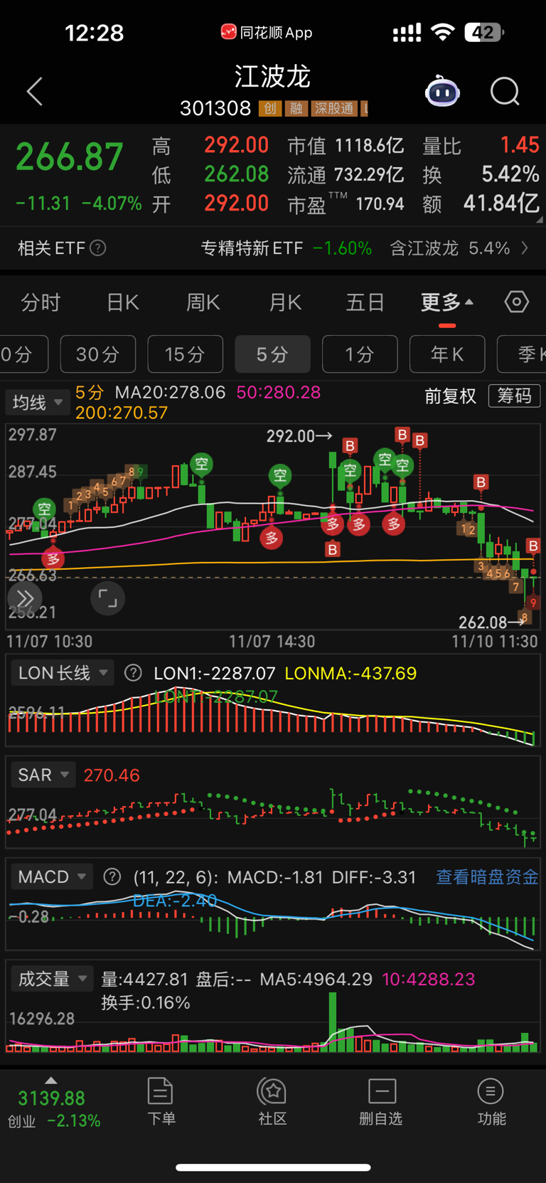 $江波龙(SZ301308)$ 288买的一路补仓成本做到280,感谢主力不杀之恩,昨天上头了贷款补的仓
