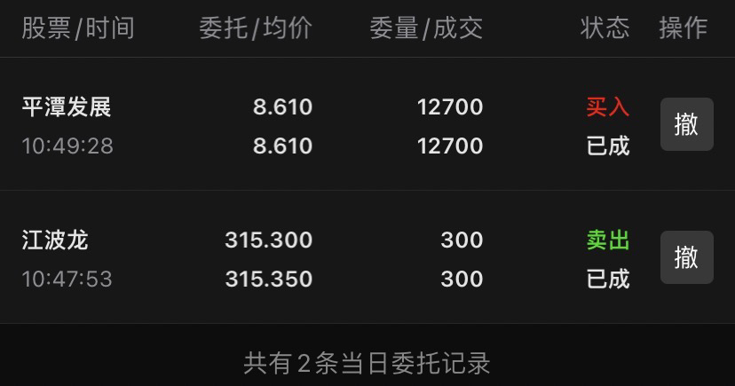 完美,昨天273吸进,今天315冲高卖,然后低位又进了平潭