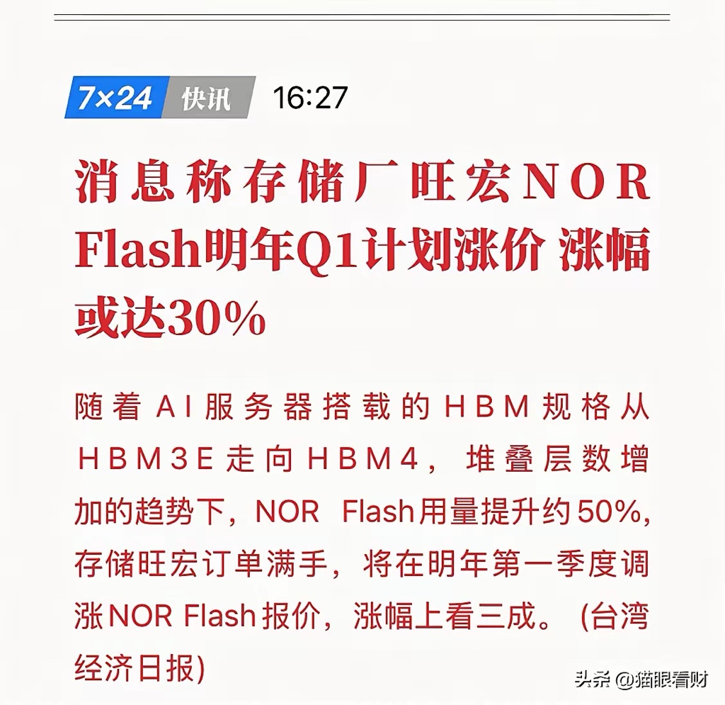 供不应求,涨价不断!NOR Flash直接上涨30%!