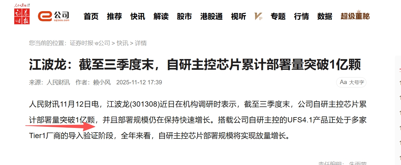 $江波龙(SZ301308)$ 自研芯片累计部署突破1亿颗,硬核科技实力毋庸置疑