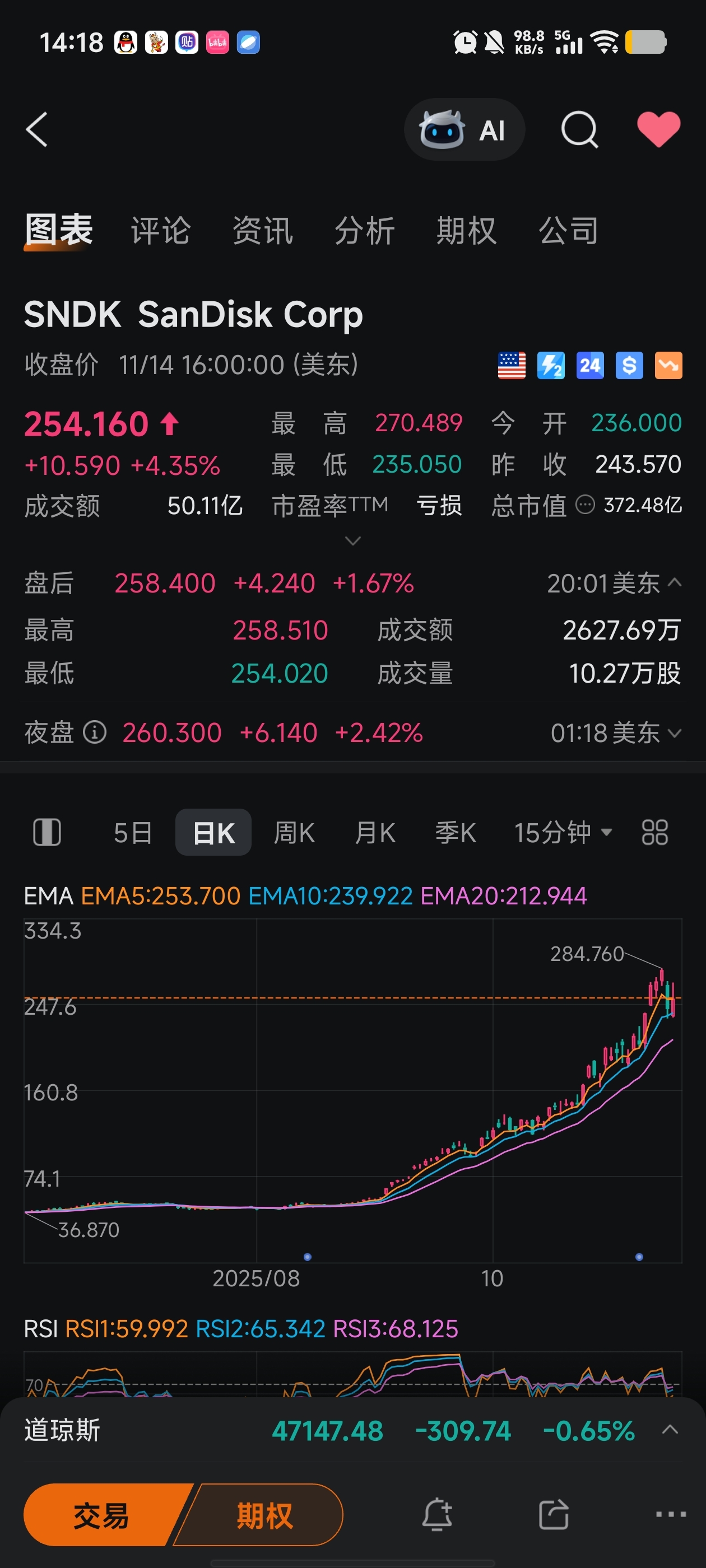 $江波龙(SZ301308)$ 闪迪夜盘目前+2.4%,本周四英伟达出三季度财报,如果英伟达大涨,会带动纳指大涨,预计闪迪后面还会新高。