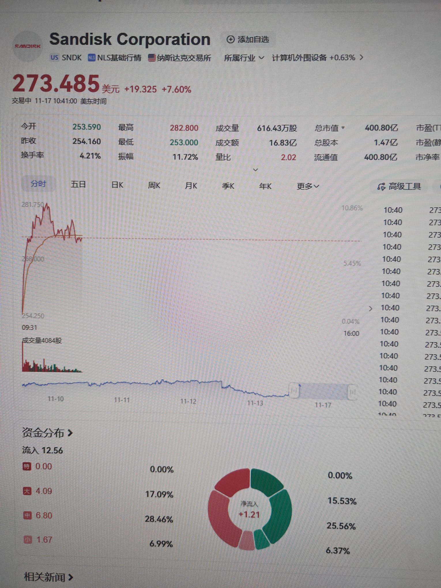 美股闪迪(sandisk)平开高走