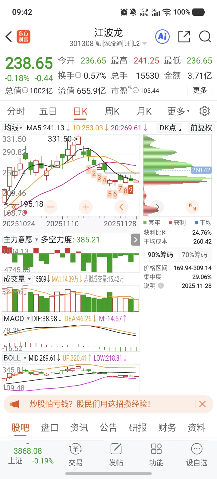 $江波龙(SZ301308)$ 没消化套牢盘估计不会拉。下周再说吧