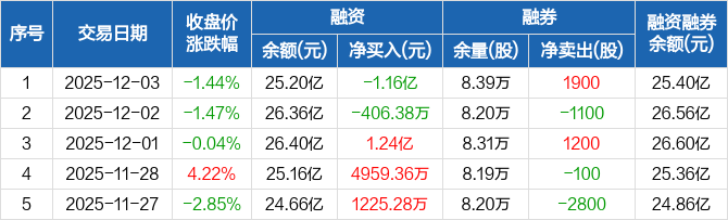 江波龙融资融券信息显示,2025年12月3日融资净偿还1.16亿元;融资余额25.2亿元,较前一日下降4.38%。