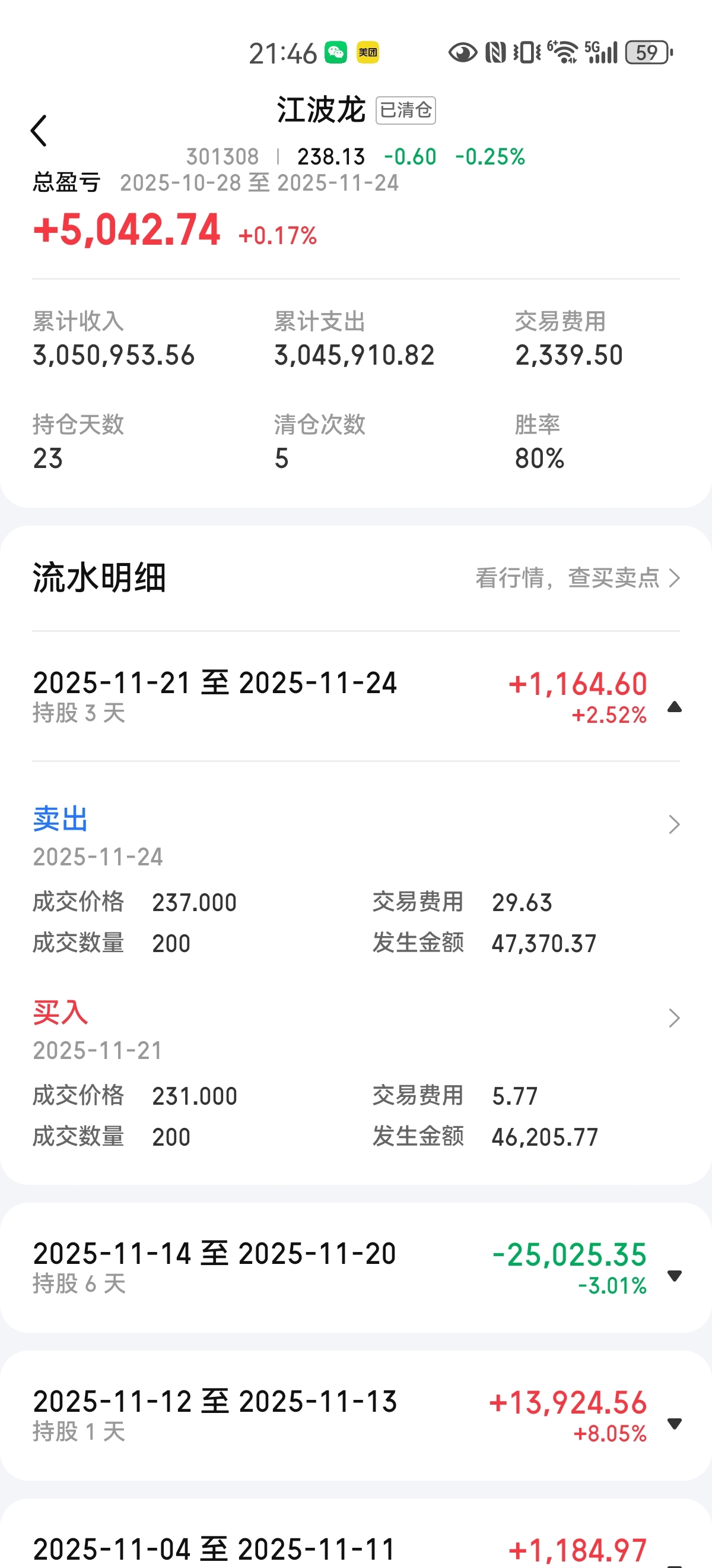 $江波龙(SZ301308)$ 昨天闪迪大涨,也救不了龙龙,真的被大资金抛弃了,不带回头的。从10月28入场,追涨杀跌,大起大落,胆战心惊,到11月24出来,赚了区区五千块,太不值