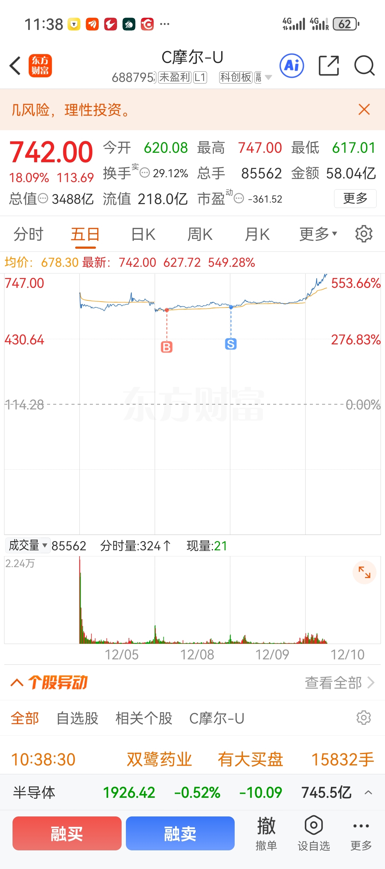 昨天寒武纪低开4个点害怕卖了摩尔,买了波波,结果波波让我亏了好多