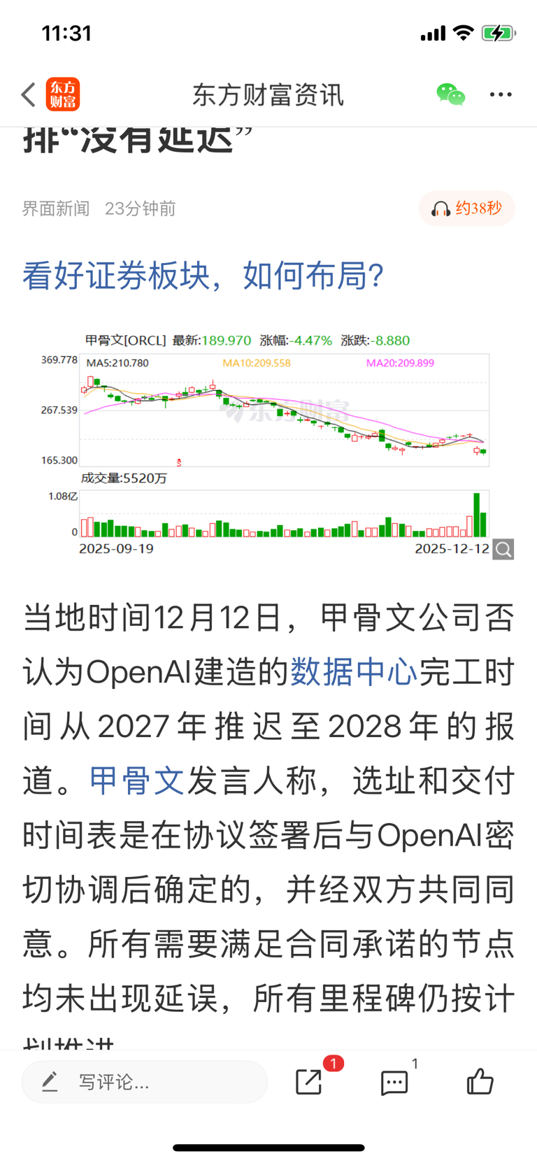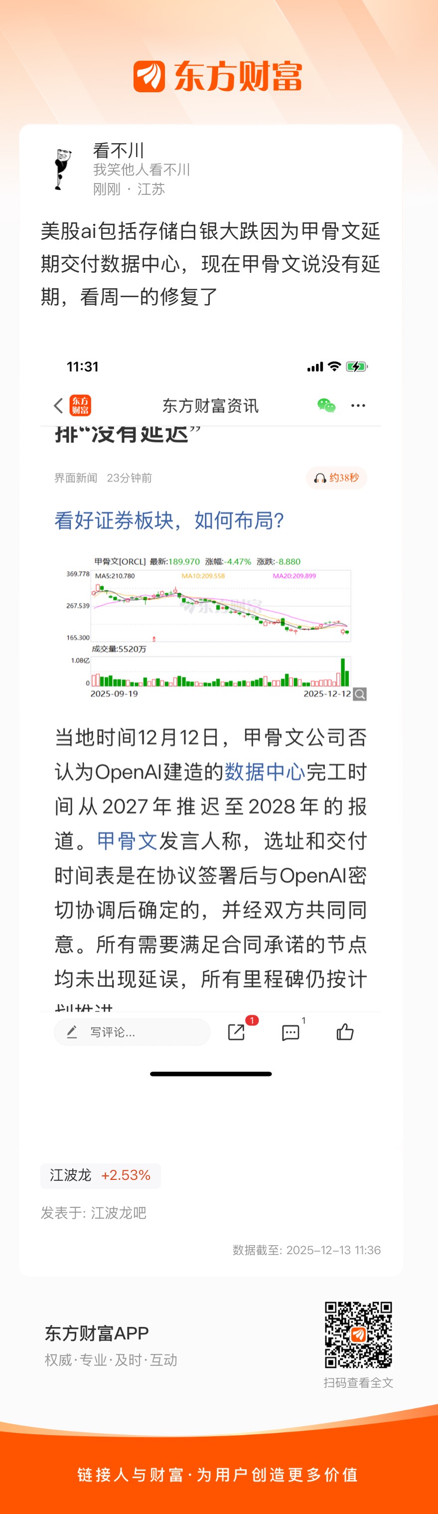 美股ai包括存储白银大跌因为甲骨文延期交付数据中心,现在甲骨文说没有延期,看周一的修复了