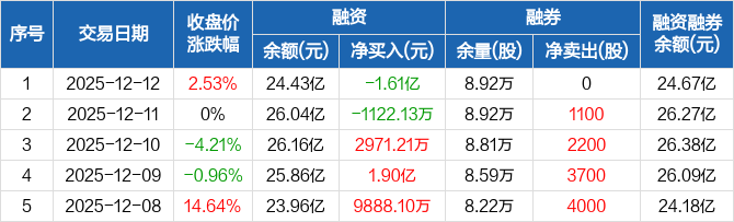 江波龙:融资净偿还1.61亿元,两市排名第17(12-12)
