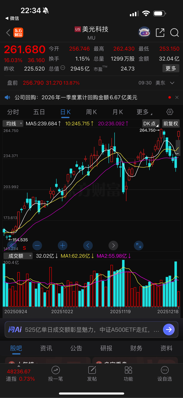 太牛了!美光16个点一阳包五阴暴涨了!你懂的!