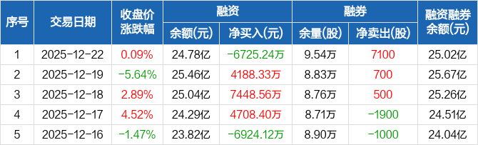江波龙:融资净偿还6725.24万元,融资余额24.78亿元(12-22)