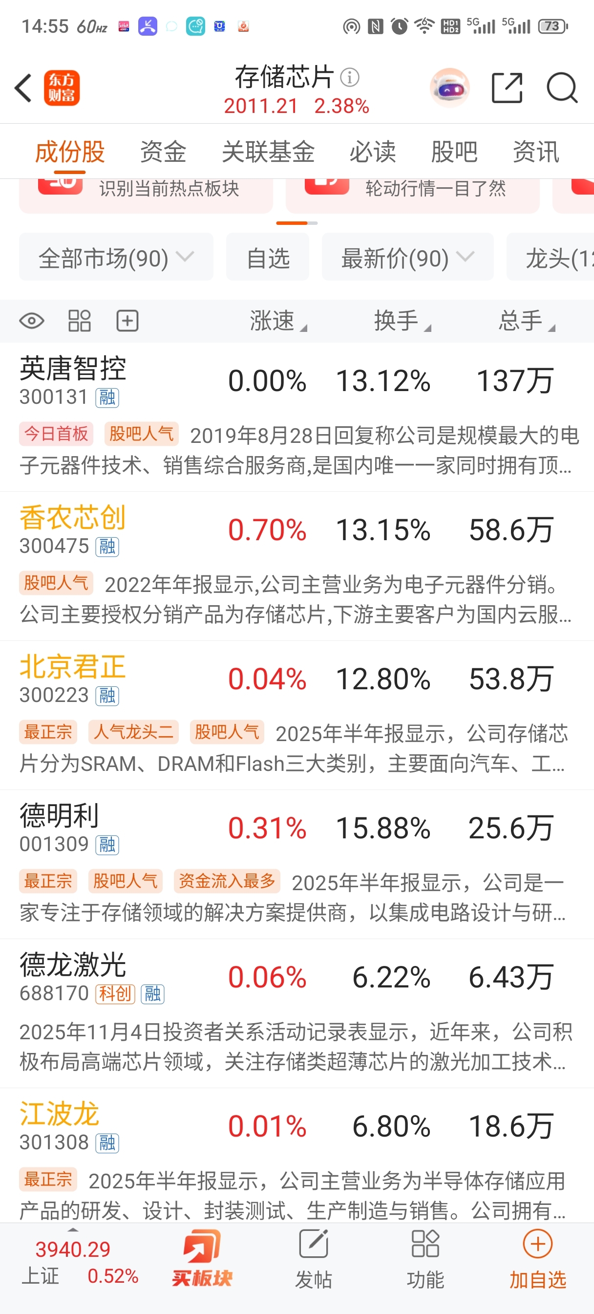 这换手率再配上这涨幅,也怪不得每次操作你都被你弄得哭笑不得。。。存储高位股里最会