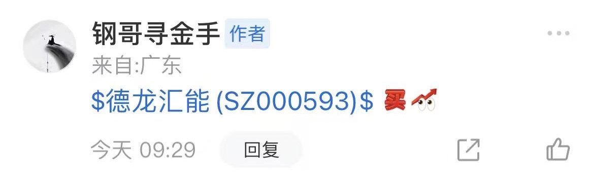 $德龙汇能(SZ000593)$ 蛋糕已给到你们,机会永远给到相信我的铁铁们、玩的就是真实钢哥说到做到,不是涨停我都不出手!