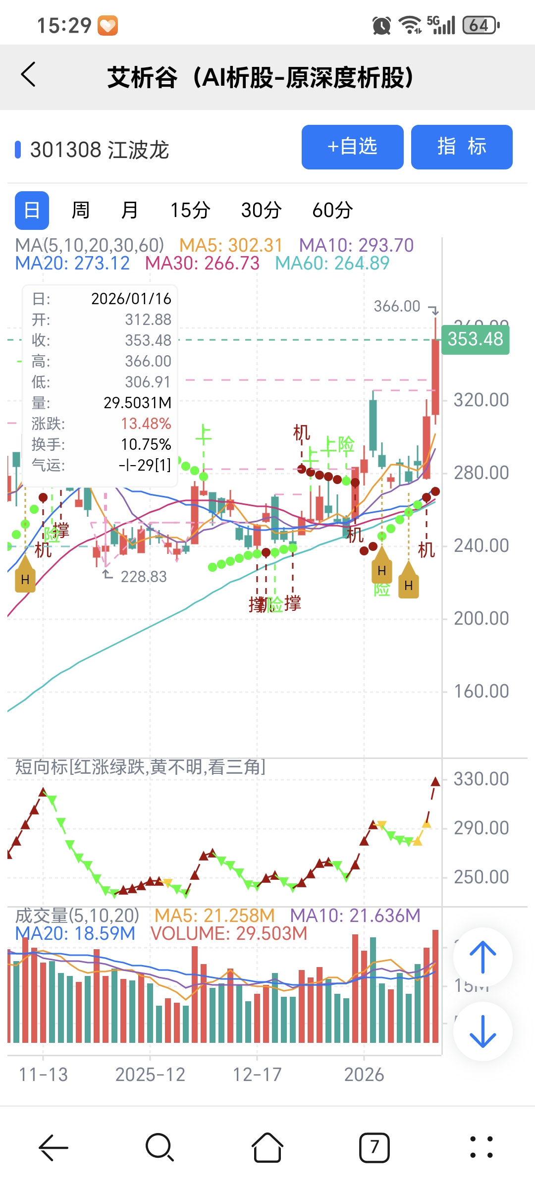 风险:股价下穿艾短波或红变绿、绿字。